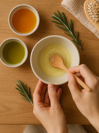 Rosemary oil is renowned for stimulating hair follicles and encouraging healthy growth. Mix a few drops with a carrier oil (like coconut or jojoba) and gently massage into your scalp for 5–10 minutes before shampooing.